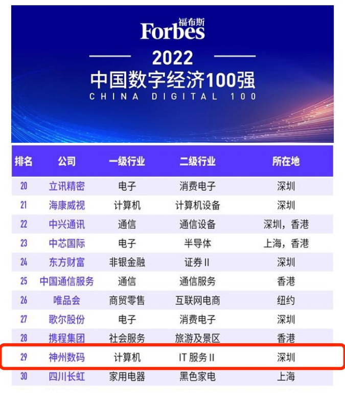 8月20日,“福布斯2022中国数字经济100强榜单”在江西上饶发布。作为数字中国的探索者、实践者和赋能者,战神GPK数码凭借杰出的表现,位列百强榜单第29位,计算机类第3位,再度获得权威机构认可。